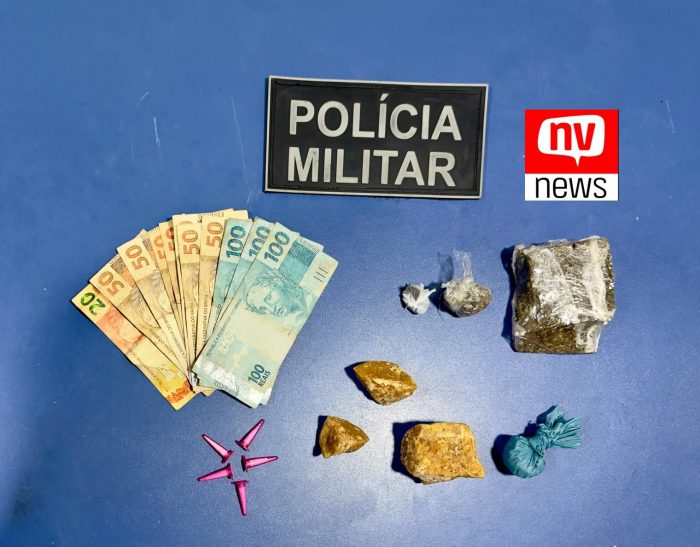 Retornando ao local, os policiais encontraram uma sacola contendo diversas drogas. A apreensão incluiu quatro porções grandes de crack, cinco pinos de cocaína, um pedaço grande de maconha, duas buchas de maconha, além de R$ 670,00 em espécie. Após análise, a quantidade de crack apreendida poderia ser fracionada em aproximadamente quinhentas pedras para venda.