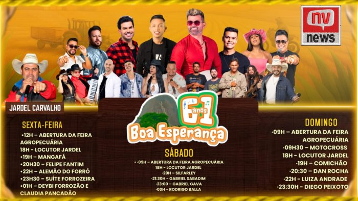 O evento será realizado no Espaço de Exposição Vila Fernandes e promete movimentar a região norte do Espírito Santo com uma programação diversificada, que inclui grandes shows musicais, a realização da 1ª Feira Agropecuária de Boa Esperança e o já tradicional 5º Motocross, atraindo competidores e apaixonados pela modalidade.