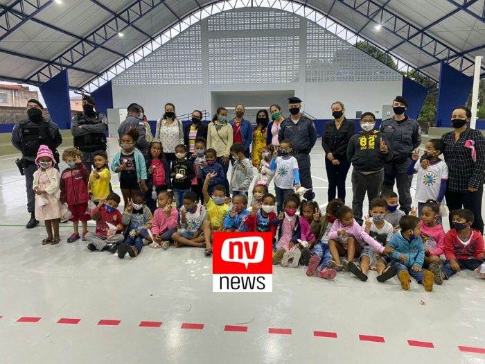 A visita, segunda já realizada, faz parte de um projeto de aproximação das crianças com os policiais militares.