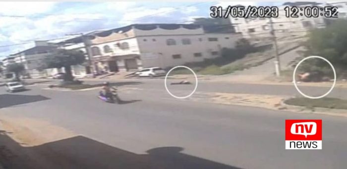 No início da tarde de quarta-feira (30), uma câmera de videomonitoramento flagrou um grave acidente que ocorreu no bairro Bonfim, em Nova Venécia. Os militares foram acionados via CCO do 2º Batalhão, para deslocar à Rod Fernão Dias para atender uma ocorrência de atropelamento. Ao chegar depararam-se com um indivíduo caído ao chão, e logo mais à frente um segundo indivíduo também caído, próximo a uma motocicleta caída a margem da via.