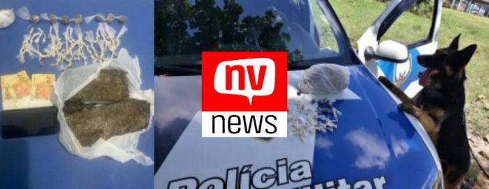 Na tarde de quinta-feira (31), por volta de 12h, o serviço de inteligência da Policia Militar do 13º BPM, tomou ciência de um furto ocorrido em estabelecimento comercial, onde dois homens teriam furtado dois capacetes, e teriam descido em direção ao bairro Cacique em São Mateus. Ao diligenciarem pelo bairro, passaram pelo campo de futebol e visualizaram um indivíduo, que possuía características de um dos suspeitos do furto, saindo próximo do rio. Os policiais militares efetuaram a abordagem e encontraram no bolso do nacional sete pedras de crack, uma bucha de maconha, um aparelho celular e a quantia de R$ 60,00 em espécie.