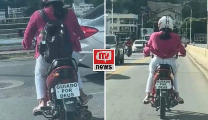 Uma motocicleta com uma placa personalizada acabou chamando a atenção de motoristas e pedestres na tarde de quarta-feira (19), no Centro de Colatina. Imagens que circulam pelas redes sociais mostram uma mulher pilotando o veículo, que exibia na placa a frase: “Guiado por Deus”.