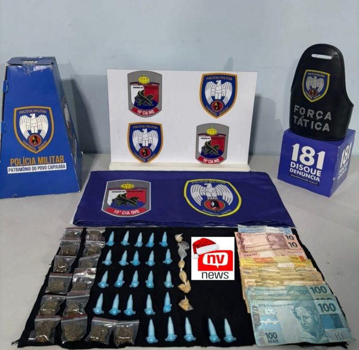 Na tarde de quarta-feira (11), às equipes da Polícia Militar , após denúncia, obtiveram êxito de localizar uma residência utilizada para a venda de entorpecentes no bairro Santo Antônio em Pinheiros. No local os militares apreenderam 14 buchas de maconha, 25 pinos de cocaína, 06 pedras de crack e a quantia de R$ 1.212,00 em notas fracionadas. A PM informou que, no momento da abordagem, não foi encontrado nenhum indivíduo no interior da residência.