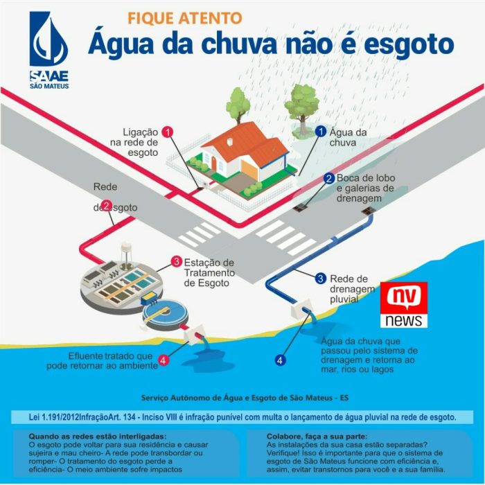 Por isso o SAAE está iniciando uma campanha de conscientização e informação denominada “Água da chuva não é esgoto”. O objetivo é orientar a população para não canalizar a água que vem de calhas e quintais cimentados para dentro da caixa de esgoto, pois em dias de chuvas mais intensas, essas caixas não suportam o volume de água e transbordam, provocando o retorno para dentro das casas.