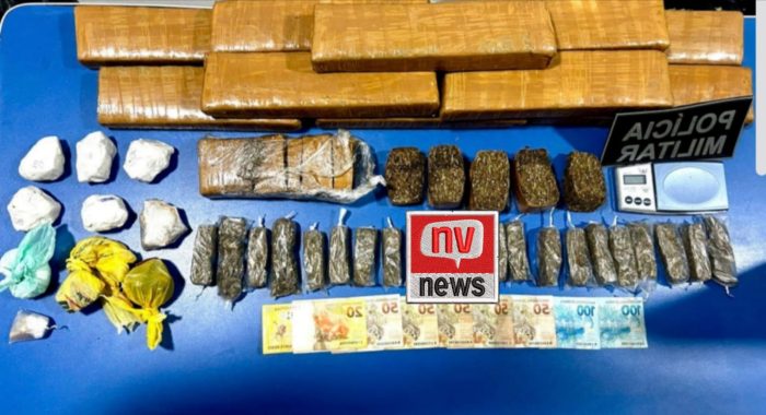 Durante a abordagem, foram apreendidos 17 tabletes de maconha, totalizando 9,5 kg; 22 buchas de maconha; 380 gramas de crack; 64 gramas de cocaína; além de R$ 470,00 em espécie.