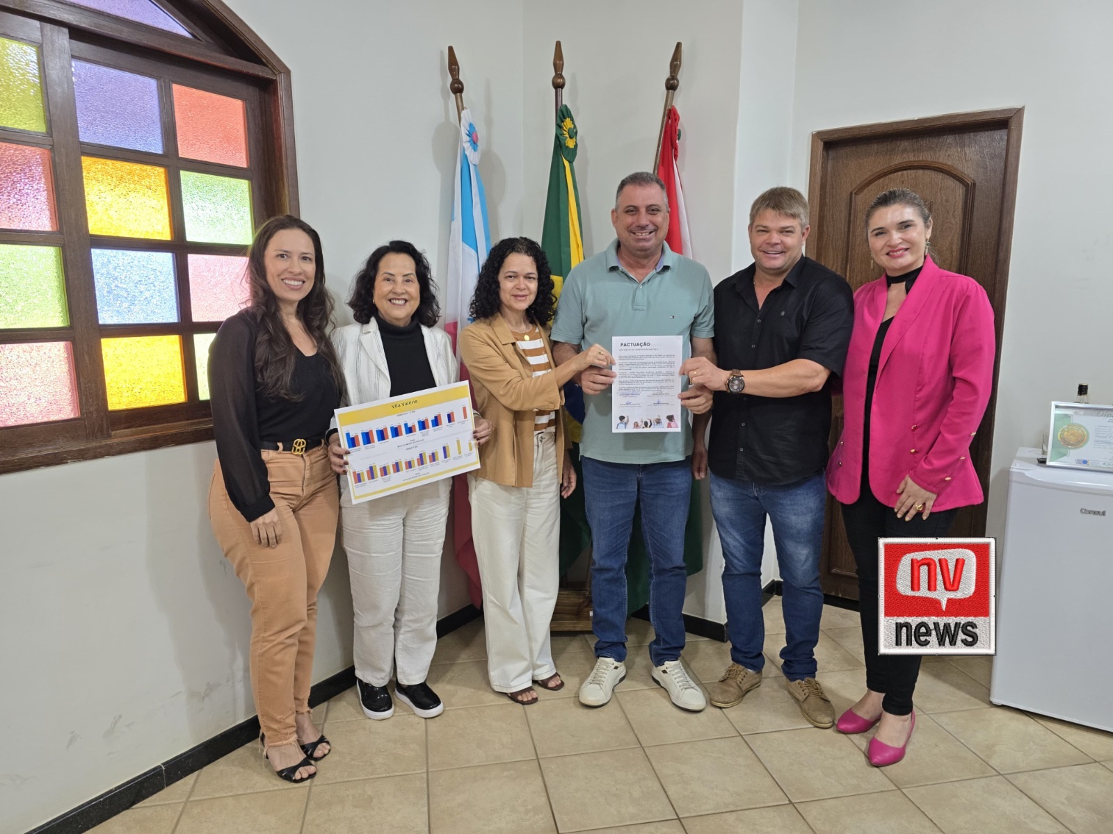 Na última segunda-feira, 30 de junho de 2025, representantes da Superintendência Regional de Educação de Nova Venécia estiveram em Vila Valério para formalizar a pactuação das Metas Educacionais do município. A reunião contou com a presença da superintendente Adriana Bonatto Merlo e da assessora do Regime de Colaboração PAES/PROETI, Alessandra Bolsanello, além do prefeito Davi Ramos, da secretária municipal de Educação, Dulcinéa Zorzanelli Brumati, e da subsecretária de Educação, Sheylla Machado Pedrone.